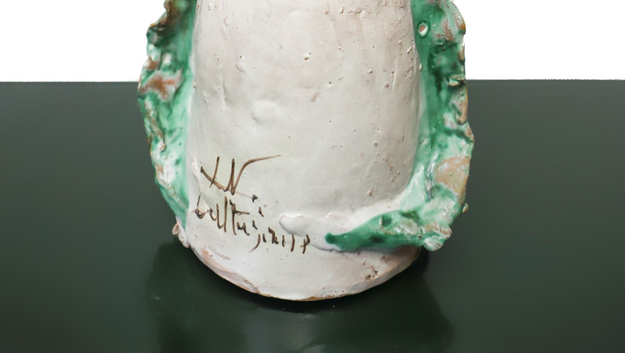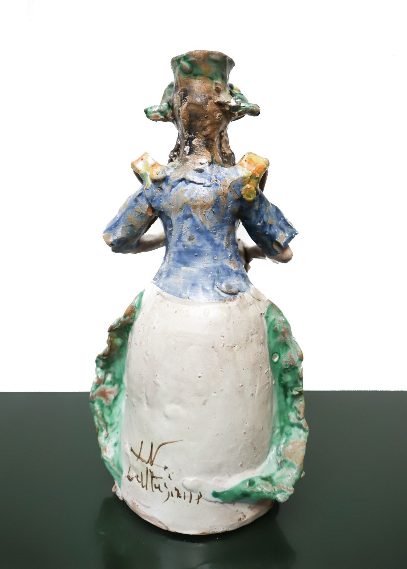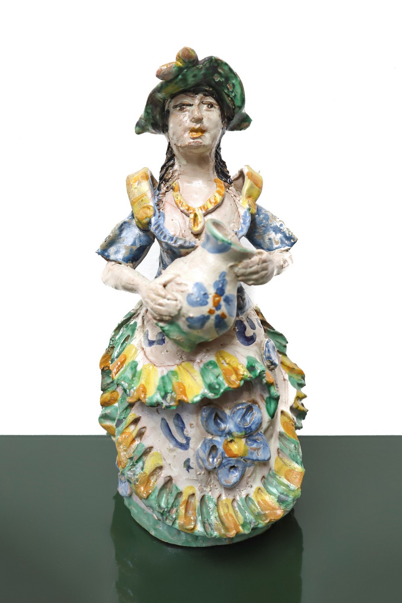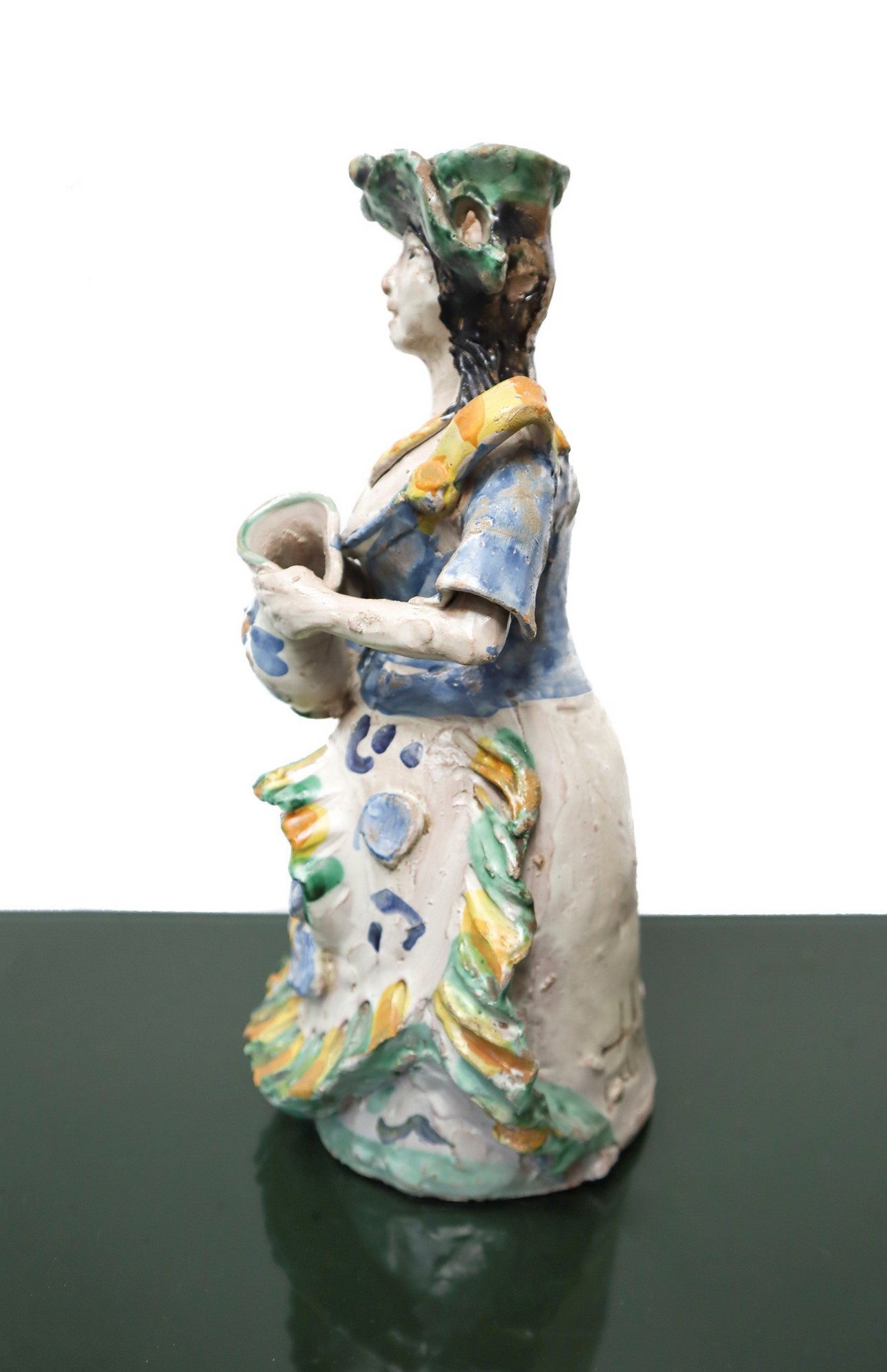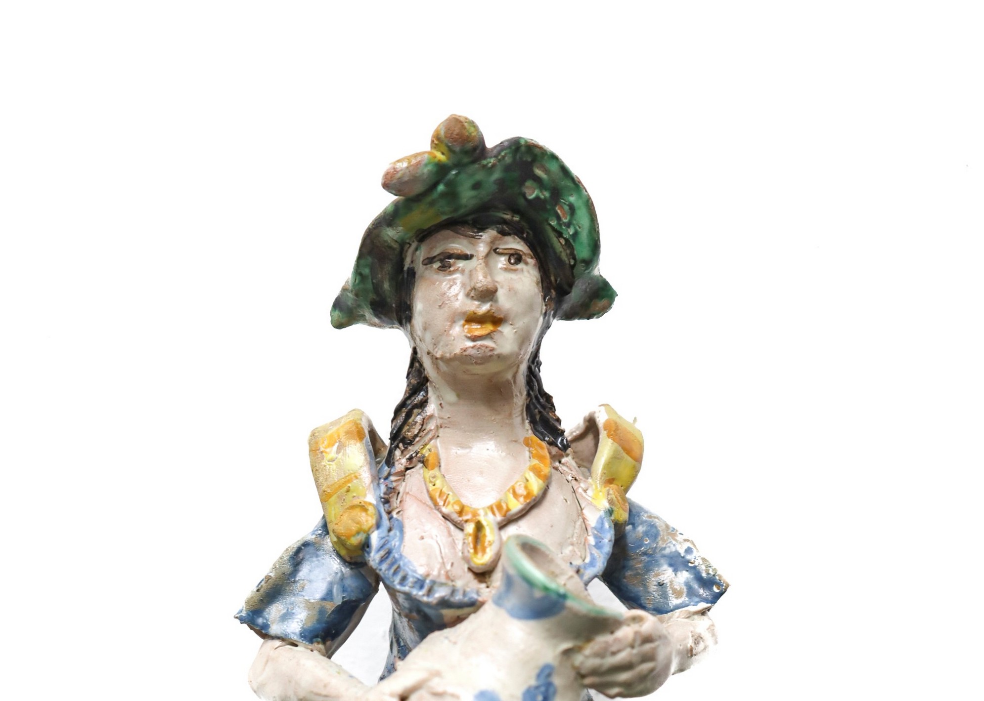 Lumiera in maiolica di Caltagirone, donna con brocca
