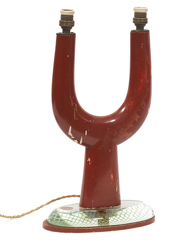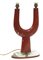 CHIESA PIETRO Lampada da tavolo a due luci in legno laccato rosso. Base in...