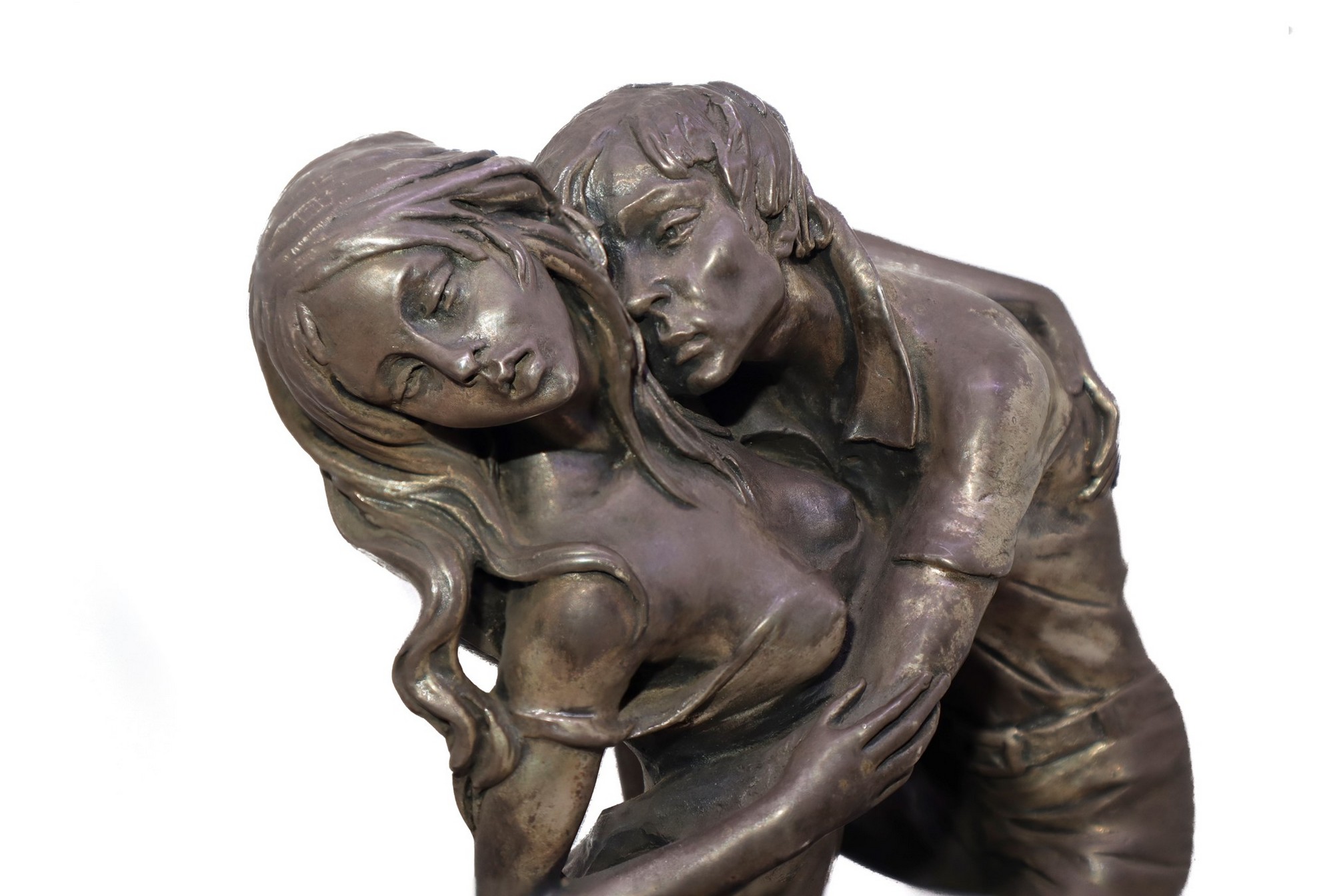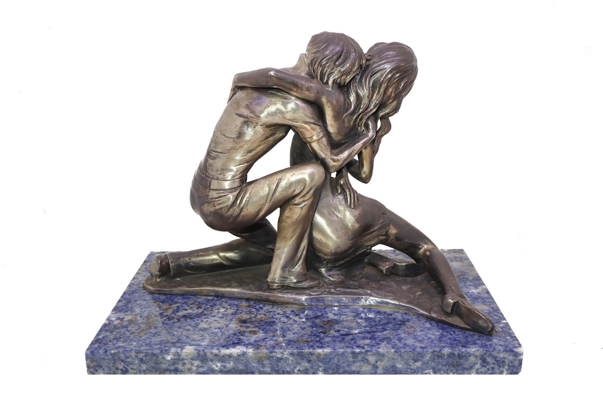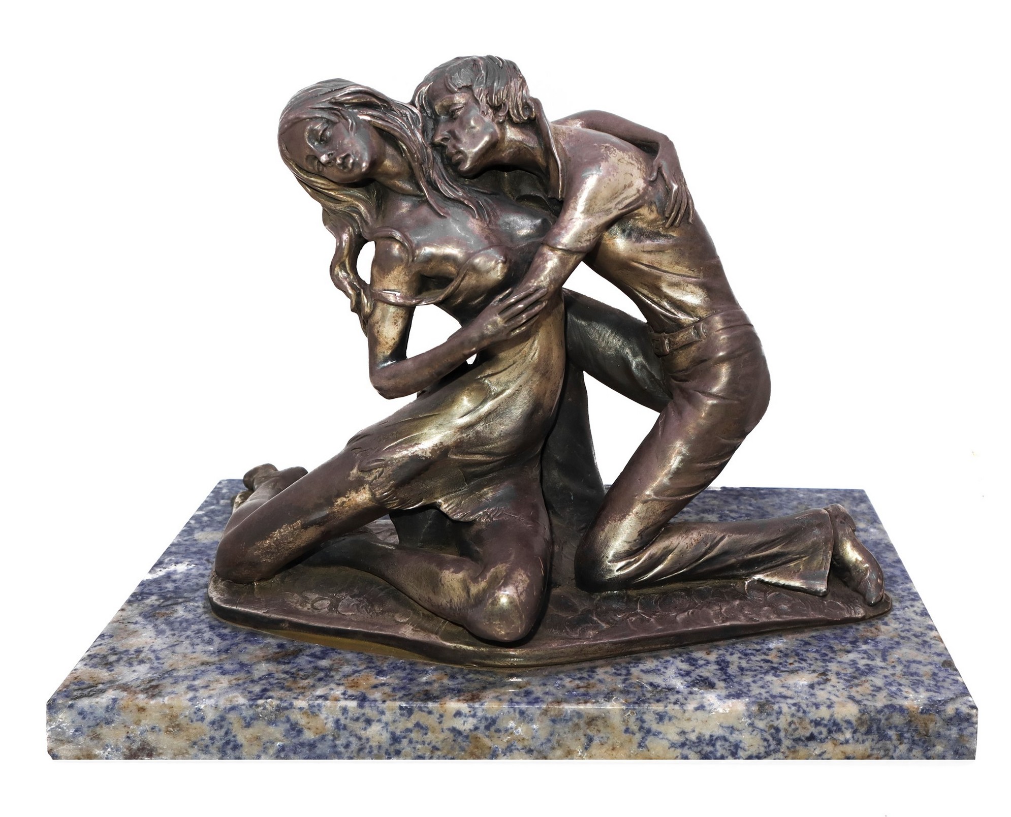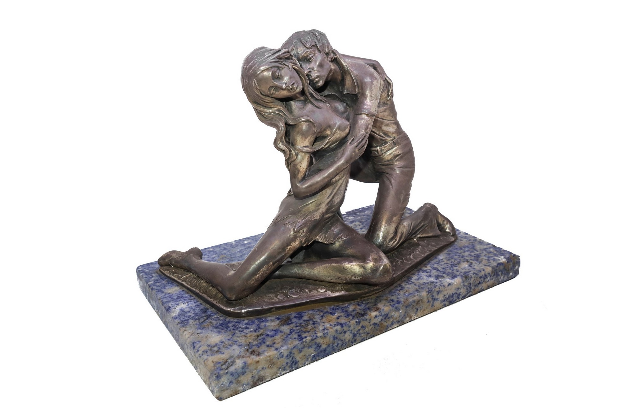 Giovani amanti h cm 24; base marmo cm 30 x cm 18 Scultura ricoperta in lamina d'argento.