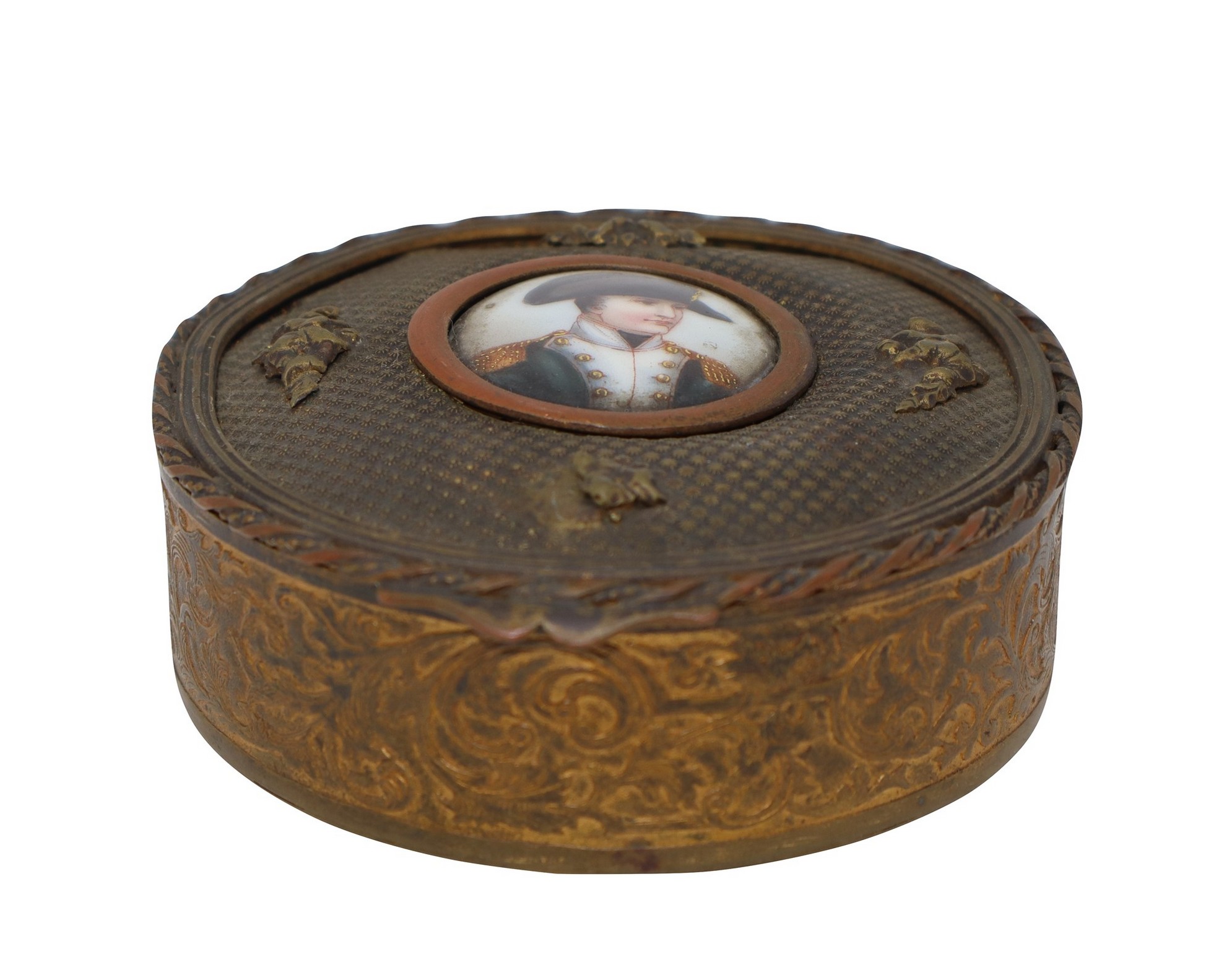Scatola rotonda in ottone dorato con miniatura di Napoleone , 19th century