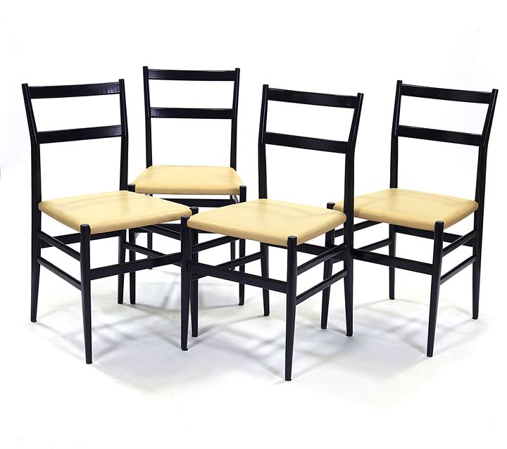 PONTI GIO Leggera Quattro sedie in legno di frassino laccato nero Imbottitura...