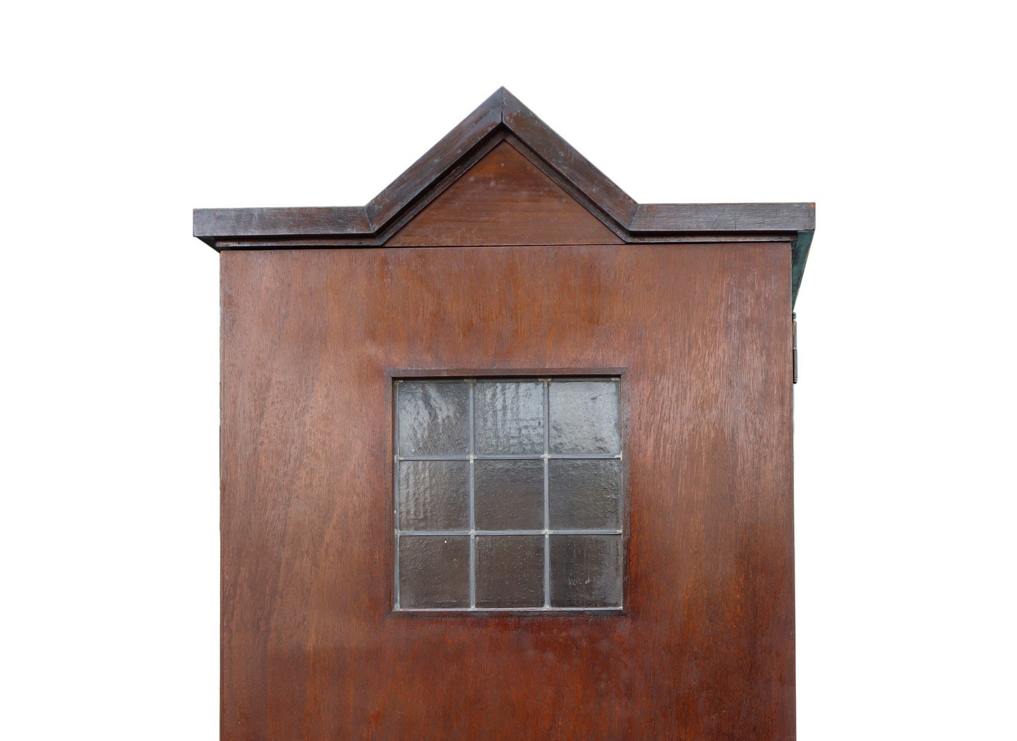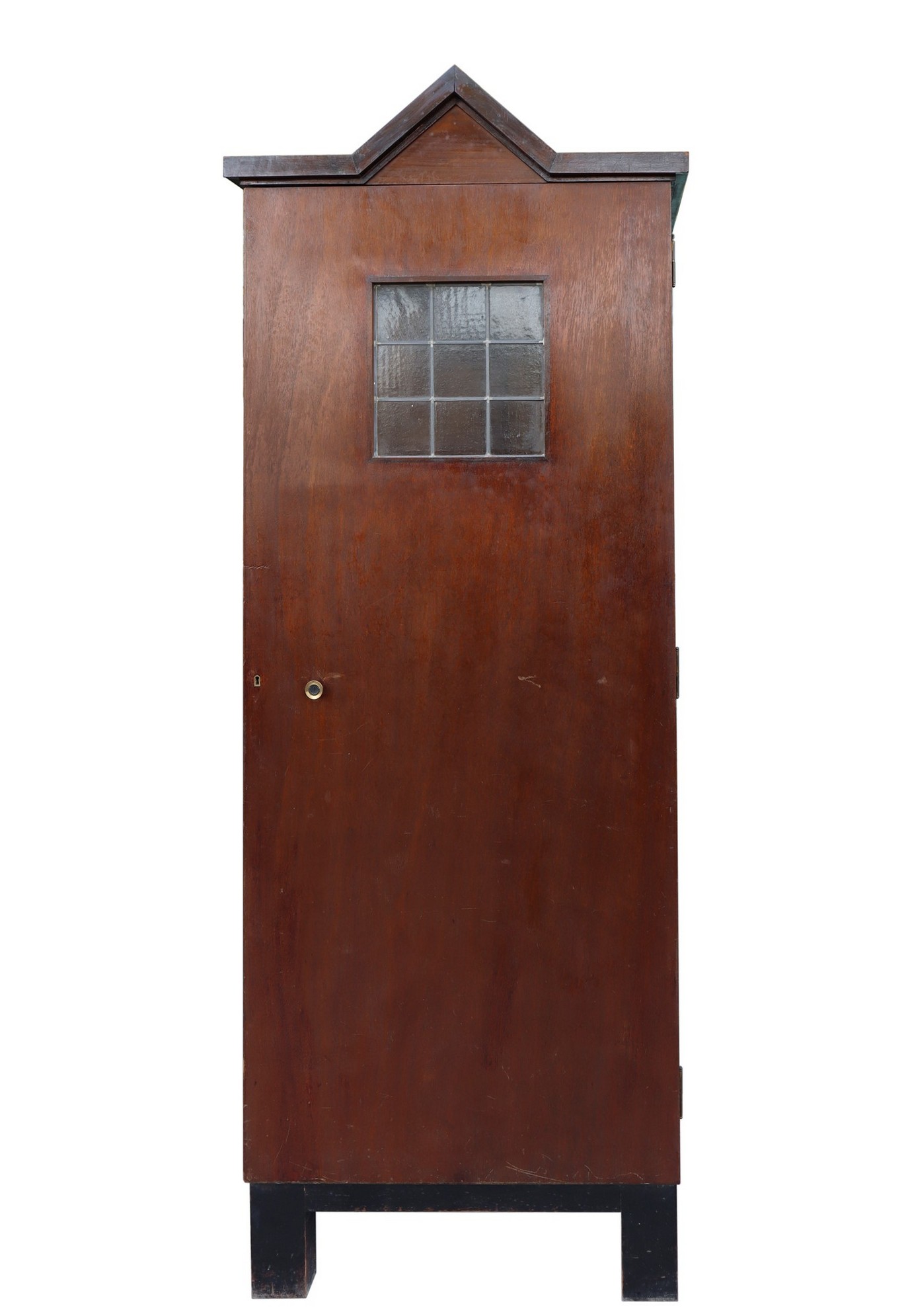 Armadio nello stile Decò in legno di noce, 20th century cm 195 x cm 70 x cm 56 Impiallaciato, interni in legno di rovera, sportello a un'anta con vetri piombati, timpano in testa, piedi rettangolari.