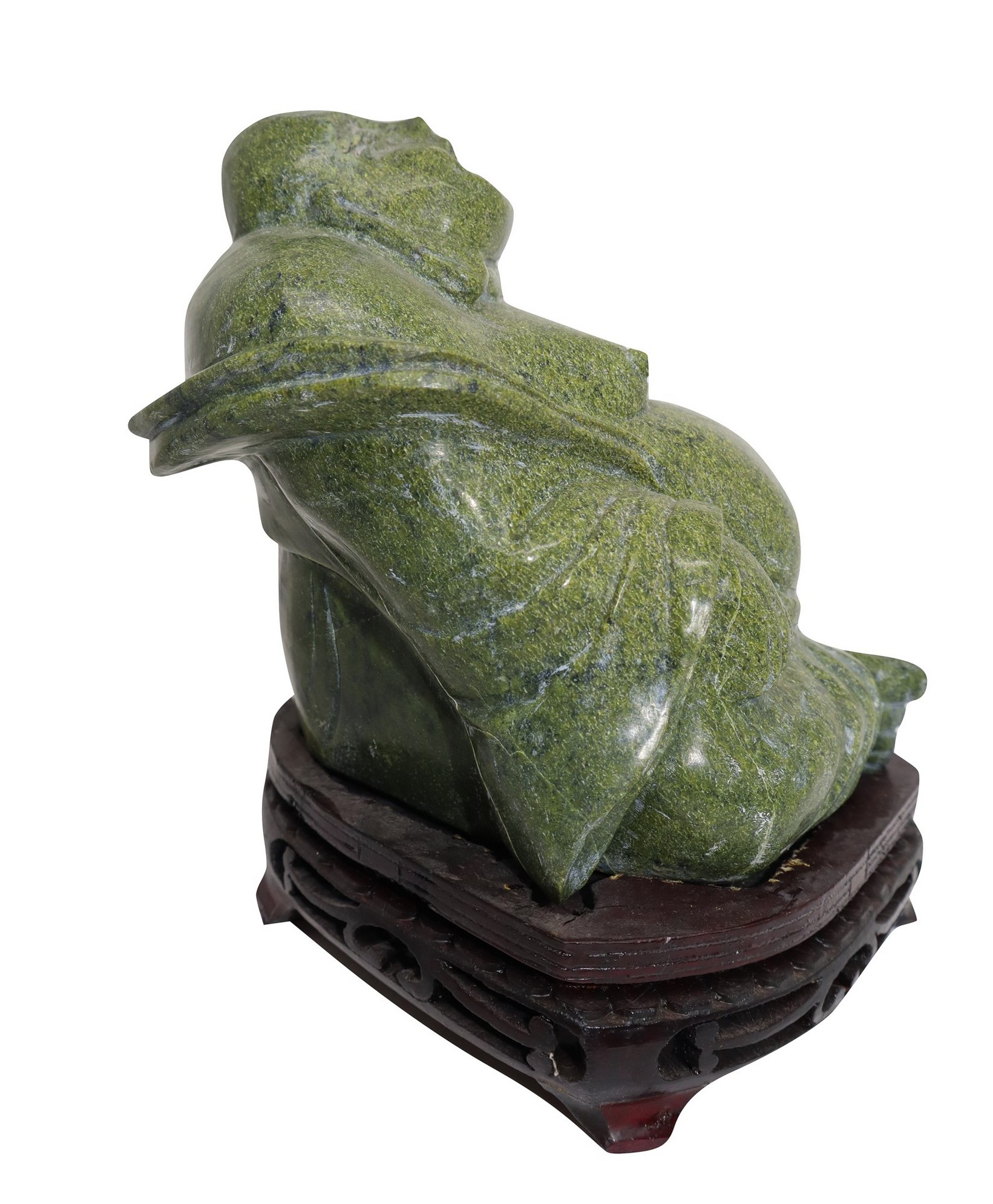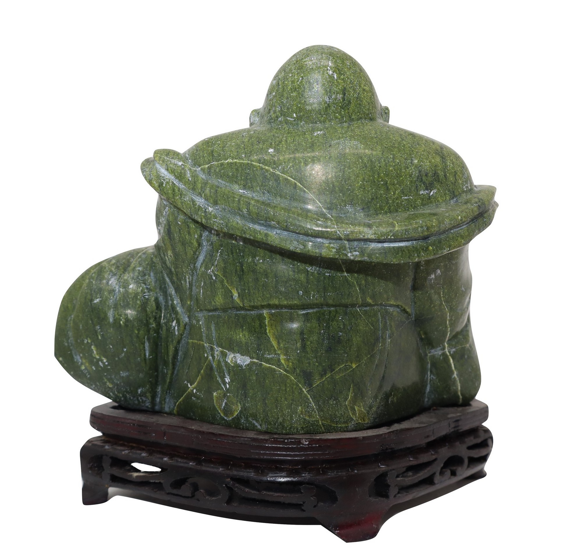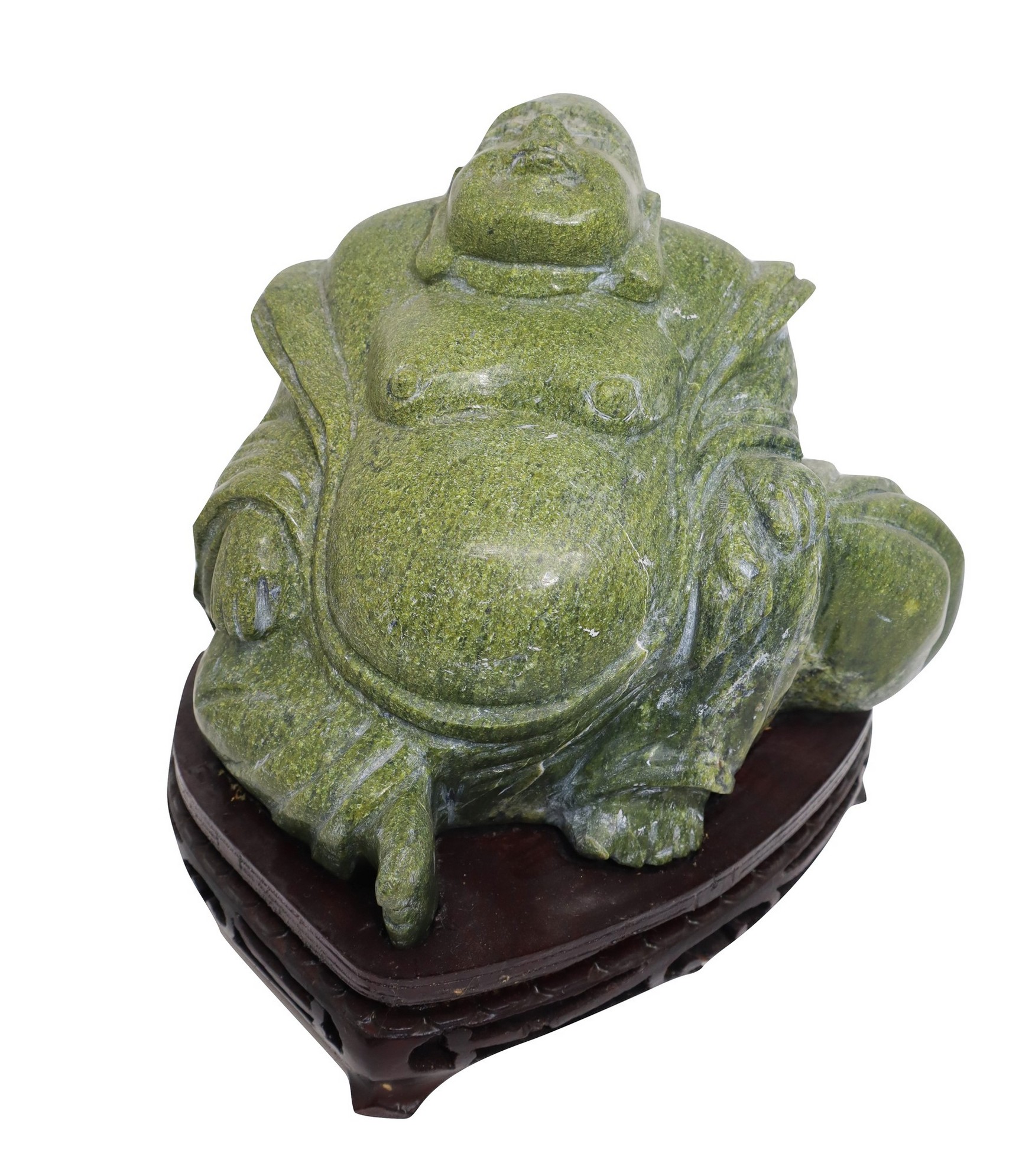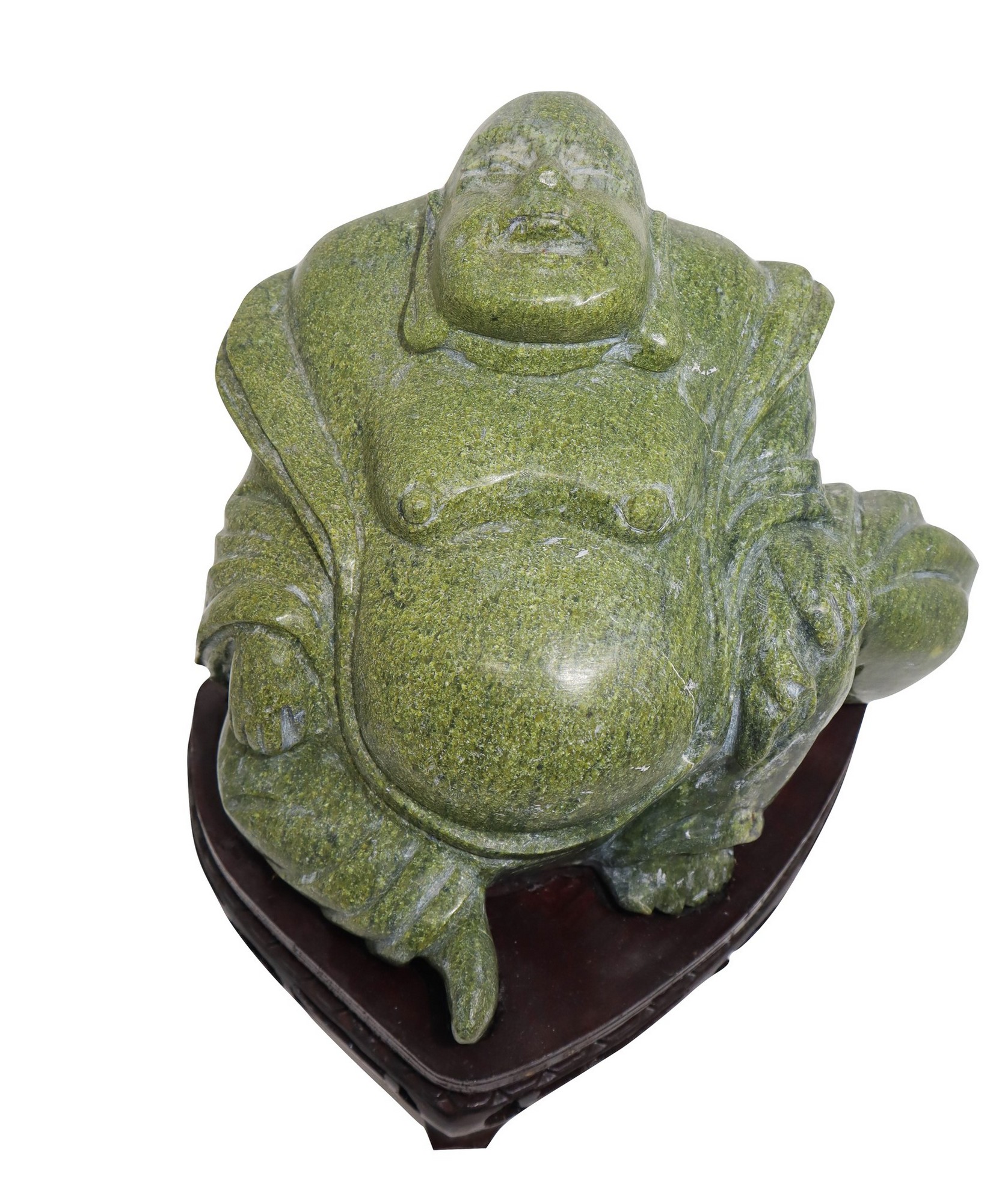 Buddha ridente in pietra dura verde cm 15 + base 1,5 cm