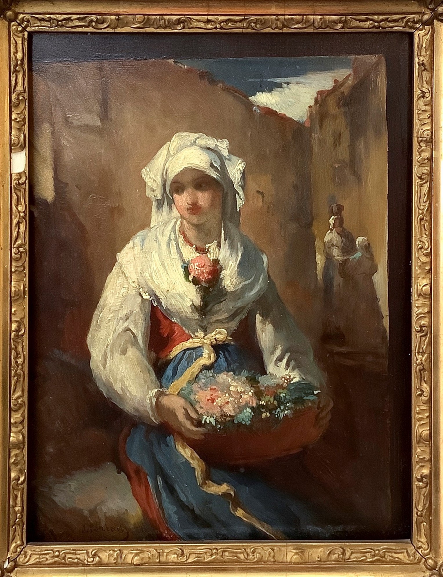 Jean-François Portaels (Vilvoorde 3 aprile 1818-Schaerbeek 8 febbraio 1895) - Ragazza in abiti popolari con vaso di fiori