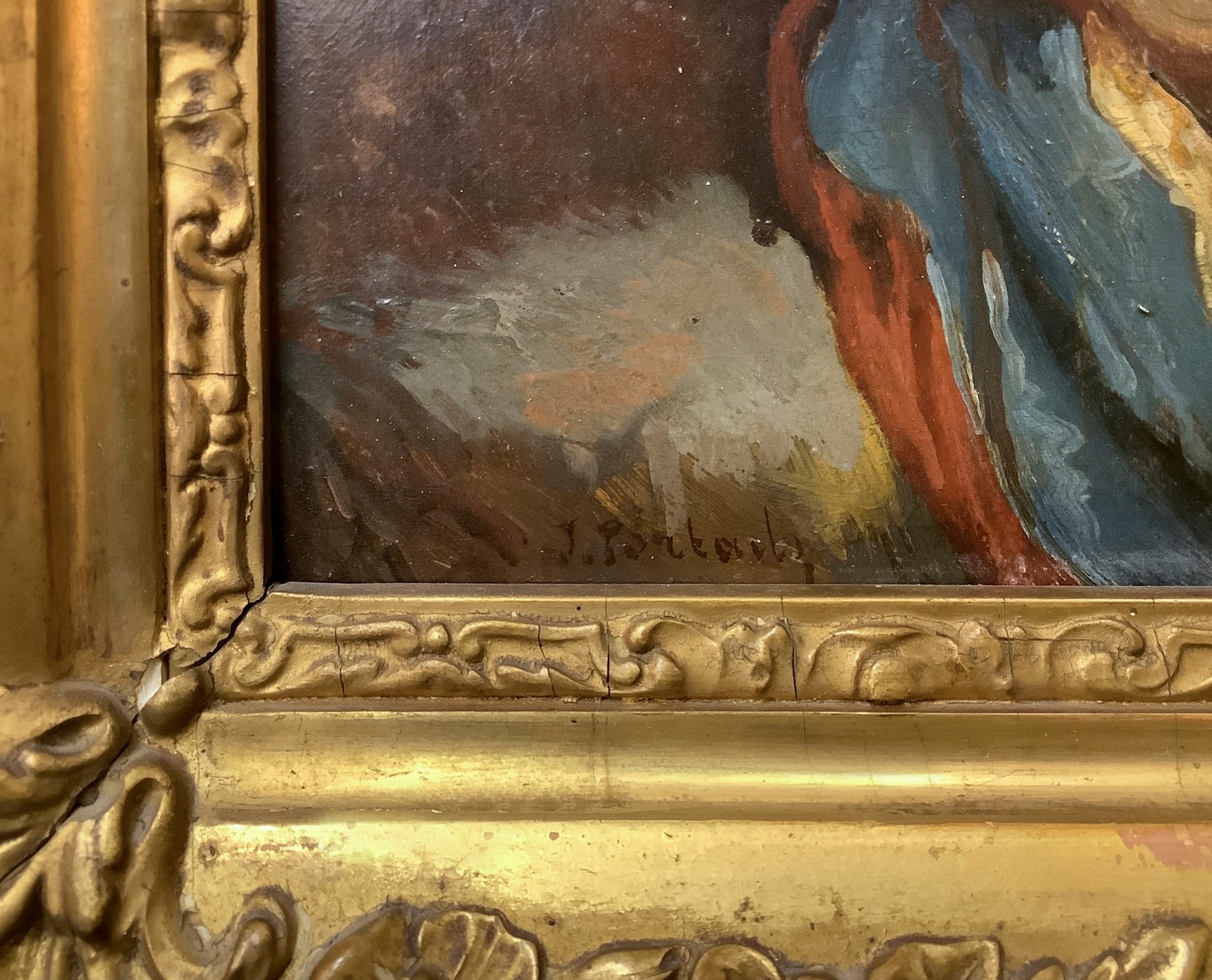 Jean-François Portaels (Vilvoorde 3 aprile 1818-Schaerbeek 8 febbraio 1895) - Ragazza in abiti popolari con vaso di fiori 30x23 in cornice 43x39 Olio su tavola