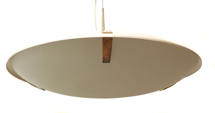 Sospensione con filo di acciaio, finitura con vernice bianca opaca e ottone lucido.
