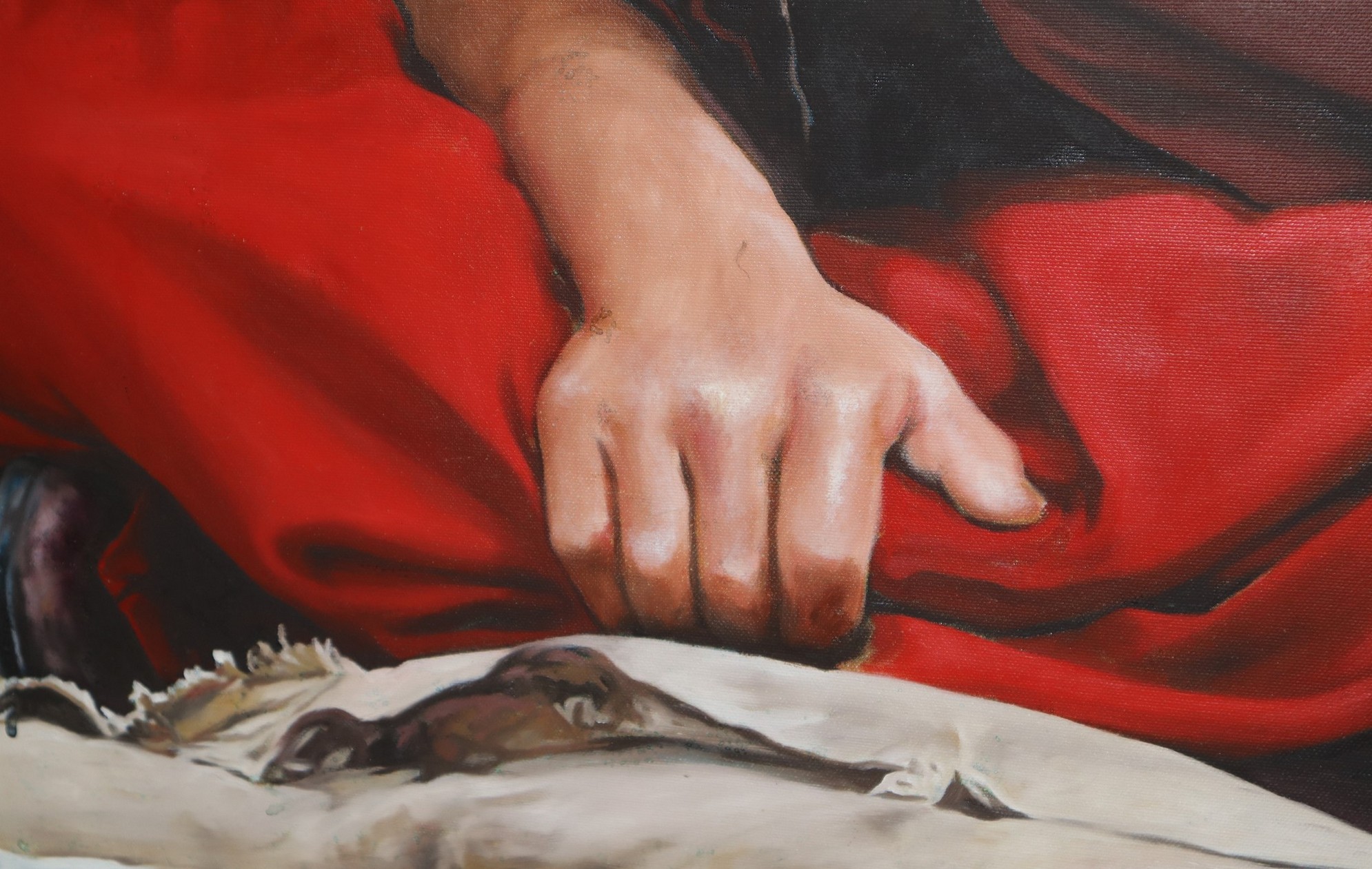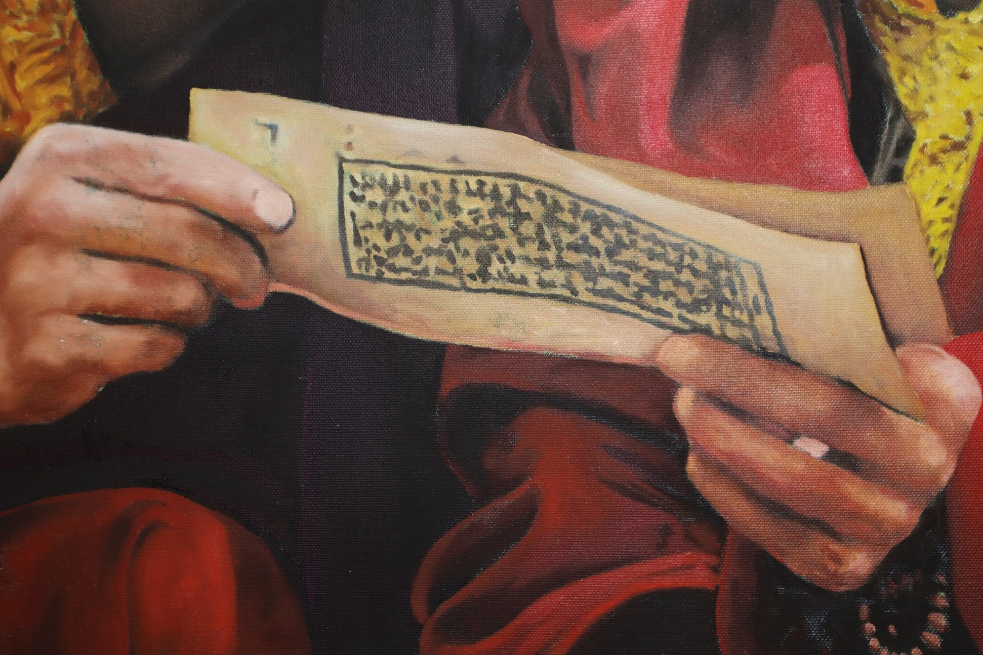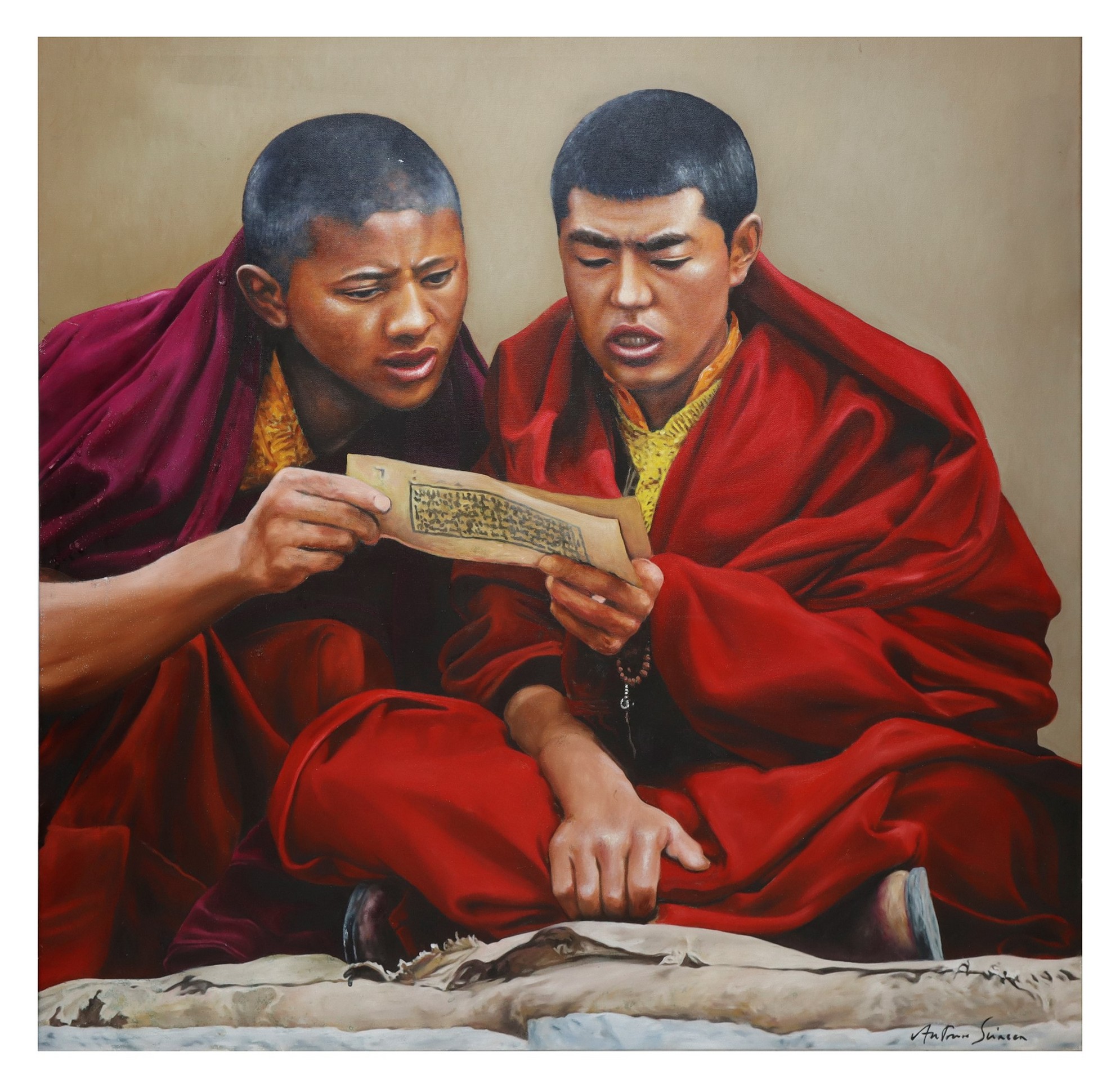 Antonio Sciacca (Catania 1957) - Monaci tibetiani cm 100 x cm 100 Olio su tela Firmato in basso a destra e sul retro, opera sprovvista di cornice.