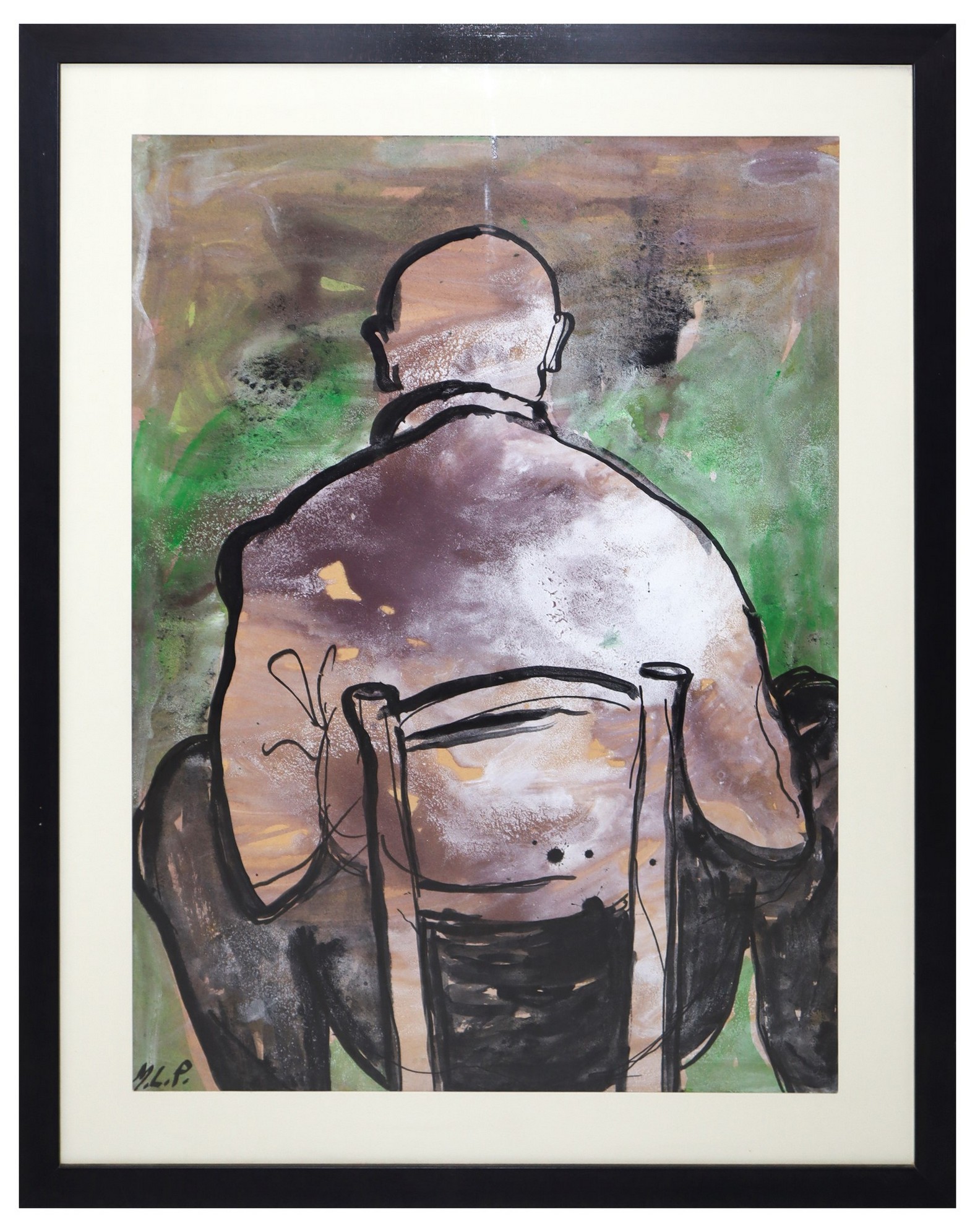 Maria Leonardi Pennisi (Acireale) - Uomo seduto di spalle Cm 69x49 in cornice Cm 85 x 65 Gouache su carta