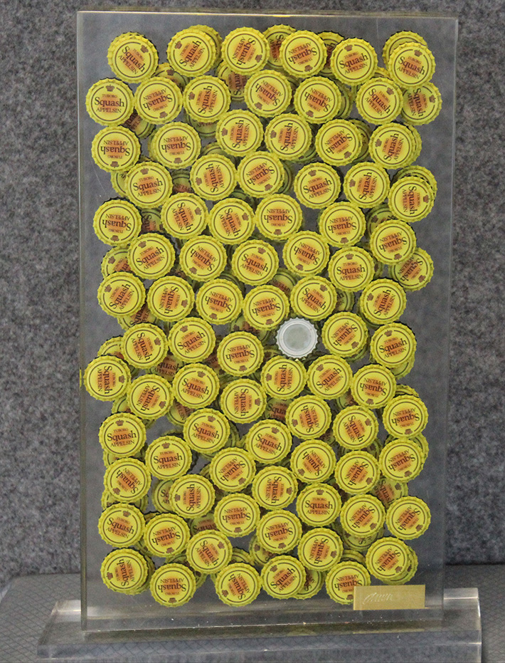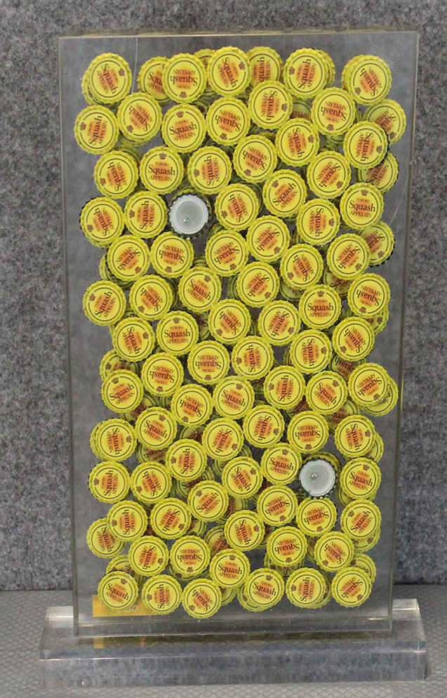 FERNANDEZ ARMAN, "Squash", 1996, Inclusione di tappi di bottiglie, Dim. 45x25x5, Al fronte: firmato in basso a destra, esemplare 15/30, Opera archiviata al N° 10576 presso l'archivio Denyse Duran Ruel