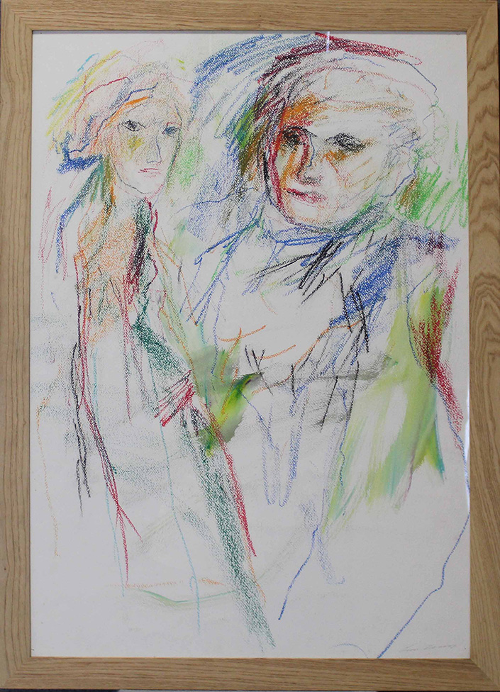 ERNESTO TRECCANI, "Fidanzati", 2001, Pastelli colorati a cera su cartoncino, Dim. 100x70, Al fronte: firmata in basso a destra, Opera con cornice