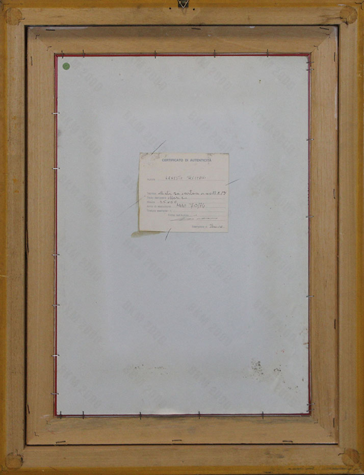 ERNESTO TRECCANI, "Marisa", Anni '70, Tecnica mista su cartoncino, Dim. 50x35, Al verso: certificato di autenticità Ernesto Treccani, Al fronte: firmato in basso a destra, Opera con cornice