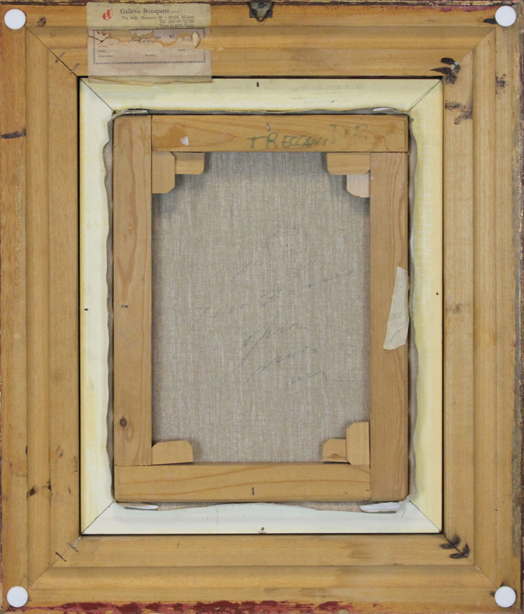 ERNESTO TRECCANI, Anni '70, Olio su tela, Dim. 35x26, Al fronte: firmato in basso a sinistra, Al verso: Dichiarazione di autenticità dell'artista e etichetta Galleria Bonaparte Milano, Opera con cornice