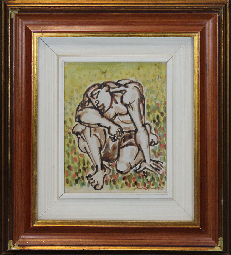 GIUSEPPE MIGNECO, Anni '70, Tempera su cartoncino intelato, Dim. 28x22, Al fronte: firmato in basso a destra, Opera con cornice