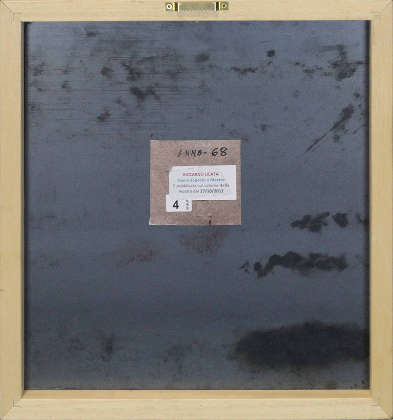 RICCARDO LICATA, Senza titolo,1963, Tecnica mista su carta intelata, Dim. 16x13, Al fronte: firmato in basso a destra, firmato in basso a sinistra, Opera esposta a Mestre e pubblicata sul Volume della mostra del 27/10/2022 (Etichetta al retro), Opera con cornice