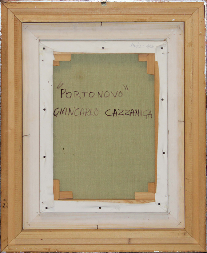 GIANCARLO CAZZANIGA, "Portonovo", Olio su tela, Dim. 30x40, Al fronte: firmato in basso a destra, Opera accompagnata da certificato di autenticità "La spirale Arte di Milano" Monza, Opera con cornice