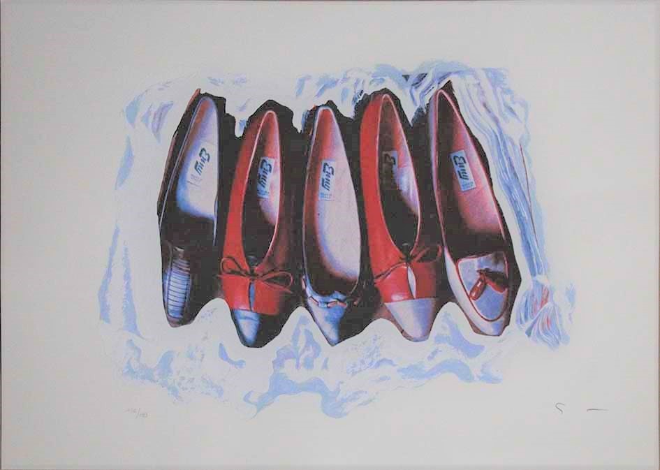Mario schifano, Senza titolo, Serigrafia materica a smalto su carta, Dim. 50x70, Al fronte: esemplare n° 136/199 in basso a sinistra e firmato in basso a destra, Senza cornice