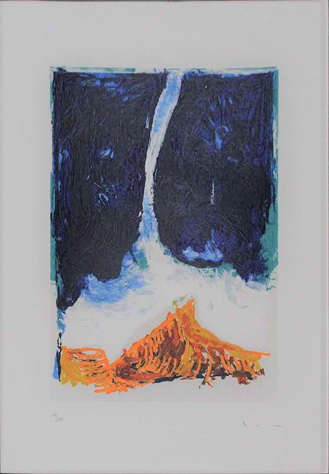 Mario schifano, Senza titolo, Serigrafia materica a smalto su carta, Dim. 50x70, Al fronte: esemplare n° 19/199 in basso a sinistra, timbrato a secco "Mario Schifano" e firmato in basso a destra, Senza cornice
