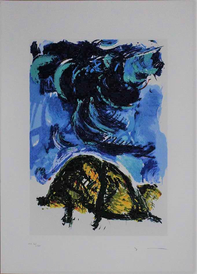 Mario schifano, Senza titolo, Serigrafia materica a smalto su carta, Dim. 50x70, Al fronte: esemplare n° H.C. 6/100 in basso a sinistra, timbrato a secco "Mario Schifano" e firmato in basso a destra, Senza cornice