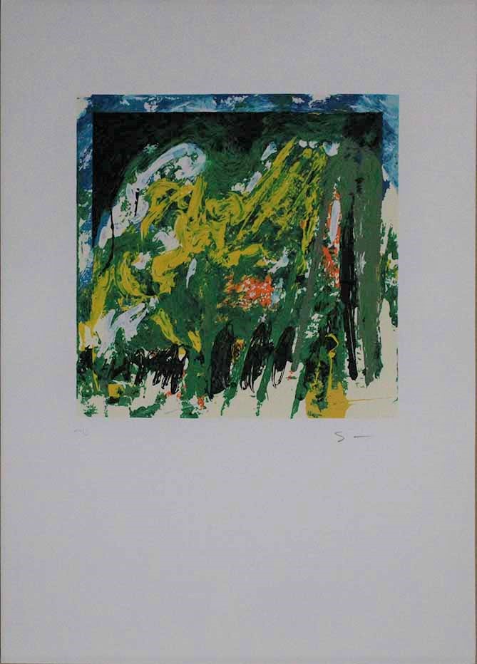 Mario schifano, Senza titolo, Serigrafia materica a smalto su carta, Dim. 50x70, Al fronte: esemplare n° XII / L in basso a sinistra, timbrato a secco "Mario Schifano" e firmato in basso a destra, Senza cornice