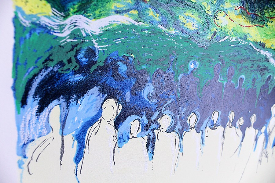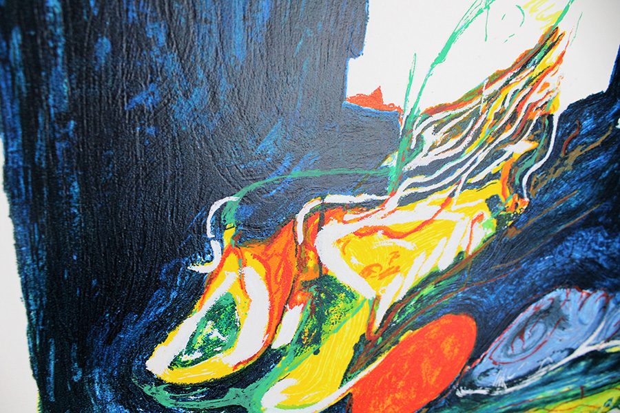 Mario schifano, Buio inquinato, 1996, Serigrafia materica a smalto su carta, Dim. 100x70, Opera pubblicata sul catalogo di Mario Schifano " Serigrafie 1996-97 " ( volume quarto ), Al fronte: esemplare n° P.A. in basso a sinistra, timbrato a secco "Mario Schifano" e firmato in basso a destra, Senza cornice