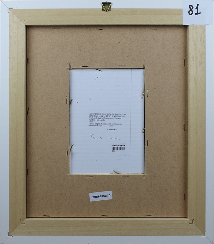 Mario Shifano, L' avvocato, 1990-97, Foto ritoccata a smalto, Esemplare unico, Dim. 13x18, Opera archiviata presso la Fondazione Mario Schifano " Archivio Generale dell' Opere di Mario Schifano " con n° archivio: F90-97/2646, il 19 giugno 2007, Opera pubblicata sul catalogo " Mario Schifano fotografie ritoccate " a pag.378, volume II, Al verso: firma "Schifano", Opera con cornice