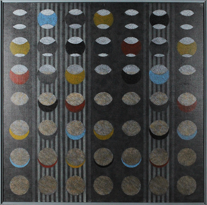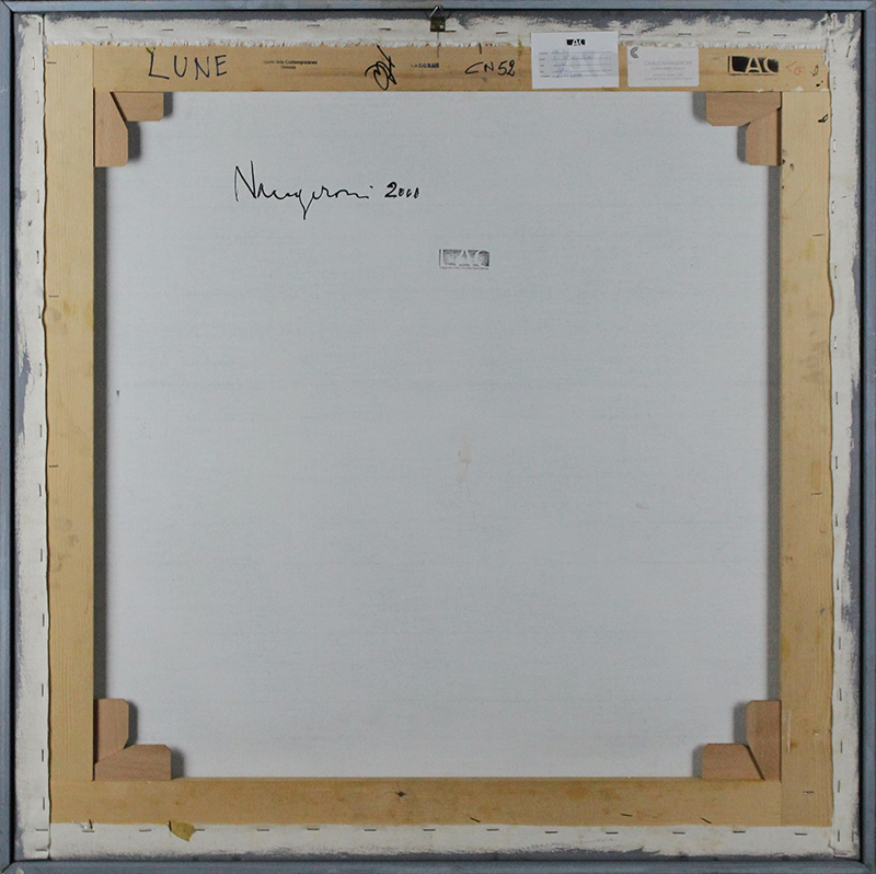 CARLO NANGERONI, "Lune", 2000, Acrilico su tela, Dim. 83x83, Al verso: datato e firmato, Opera con cornice