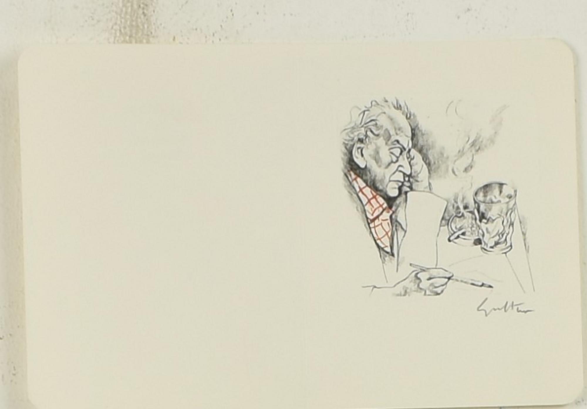 riproduzione fotolitografica a 4 colori dell'autoritratto di Renato Guttuso, cm 8x8, su foglio cm 14x10,5; es. 4857/5000