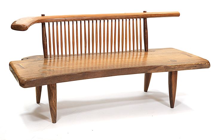 NAKASHIMA GEORGE (NELLO STILE DI) Panca in legni esotici assemblati ad...