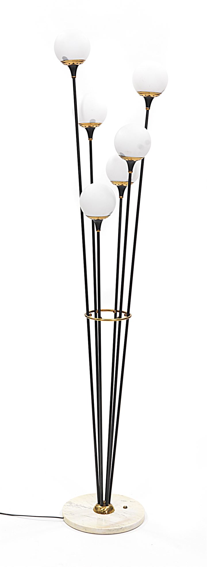 STILNOVO (ATTRIBUITO) Lampada a sei luci con diffusori sferici in vetro...