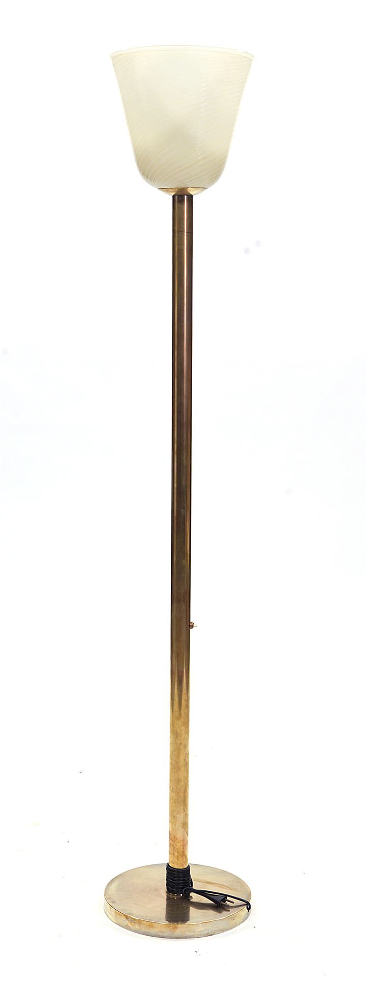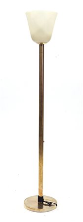 LAMPADA Lampada in ottone con diffusore in vetro soffiato pulegoso. 1930...