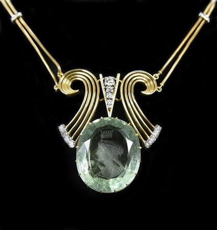 con pendente grande Berillo naturale con lavorazione a cammeo di ct 230 circa.