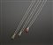 ciascuna catena realizzata a maglia sottile ed impreziosita da un pendente rispettivamente in zaffiro, rubino e smeraldo di taglio ovale montato entro castone in oro giallo e sormontato da due piccoli brillanti. Lunghezza cm 40 circa, peso complessivo gr. 5,30