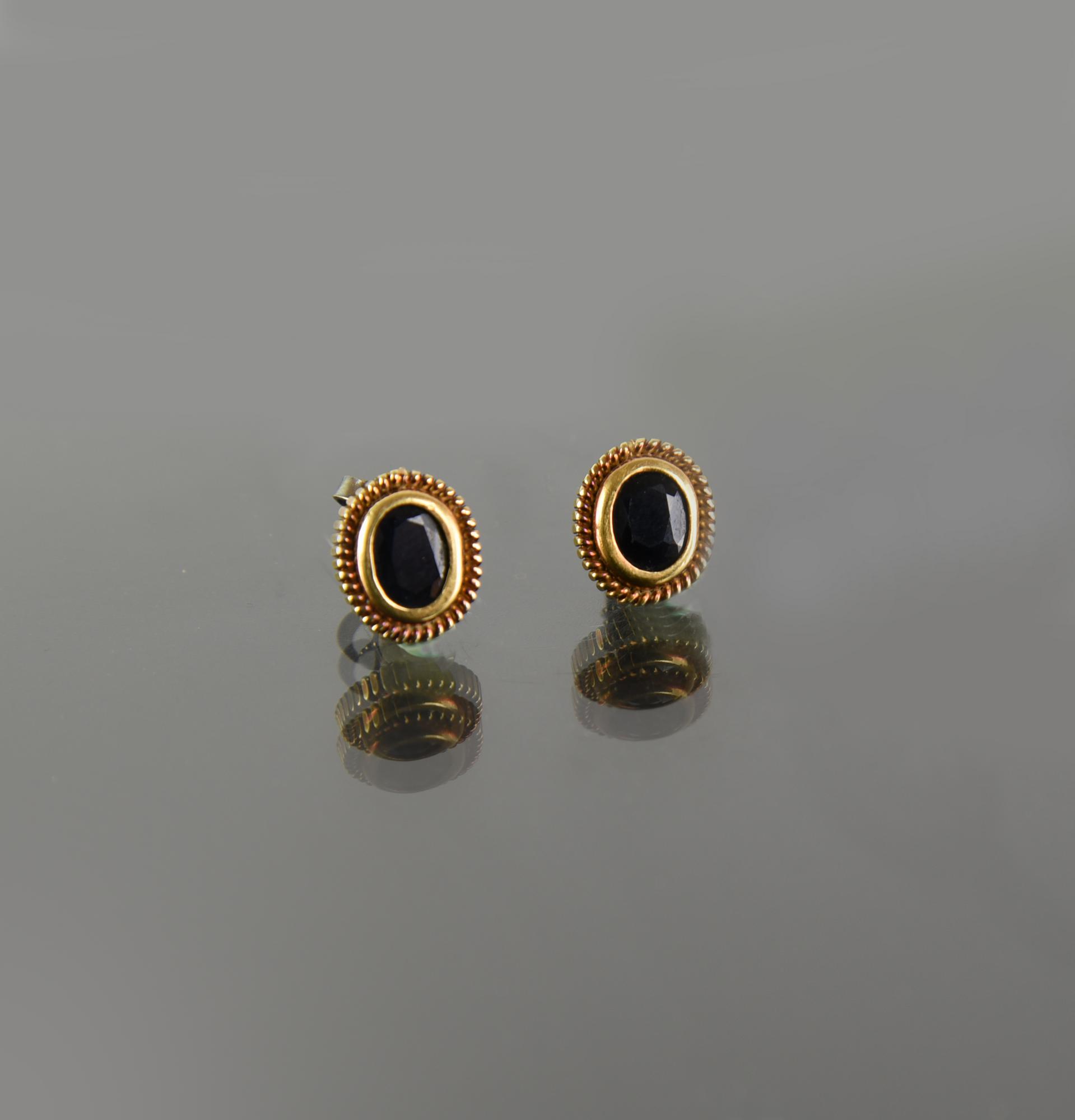 COPPIA DI ORECCHINI OVALI CON PICCOLO GRANATO AL CENTRO