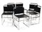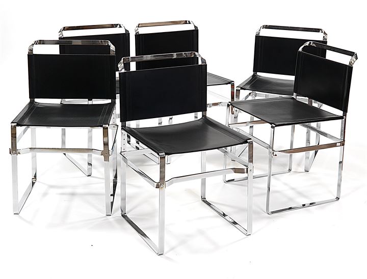 Sei sedie sedie con struttura in metallo cromato, schienale e sedile in cuoio.