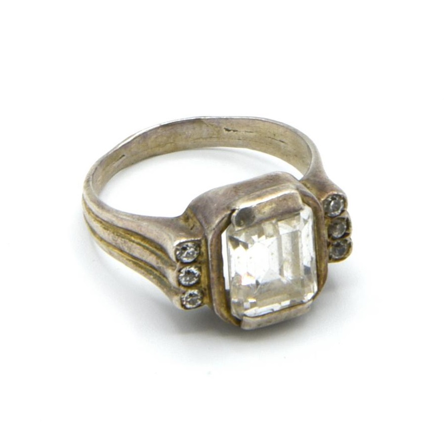 ANELLO IN ARGENTO CON ZIRCONE RETTANGOLARE INCORNICATO DA PICCOLI ZIRCONI