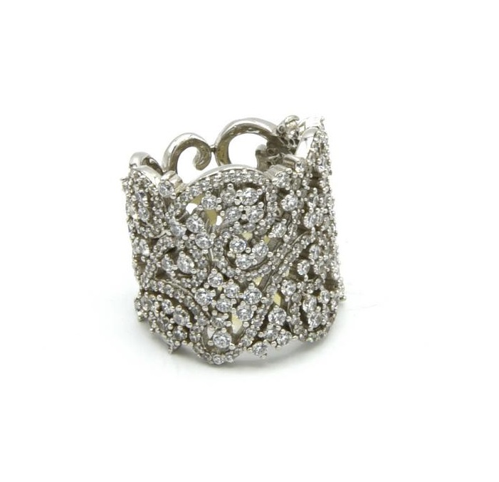 ANELLO A MOTIVI VEGETALI in argento 925 decorato con zirconi misura 17