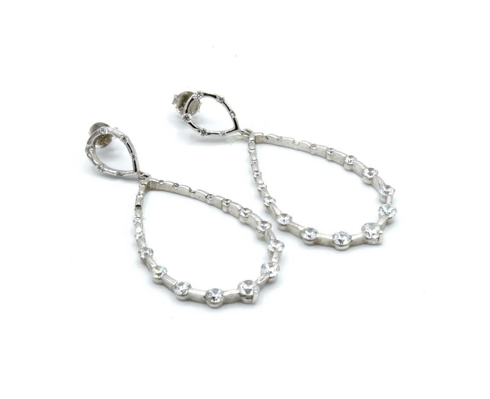 ORECCHINI PENDENTI A GOCCIA in argento 925, decorati con piccoli zirconi in...