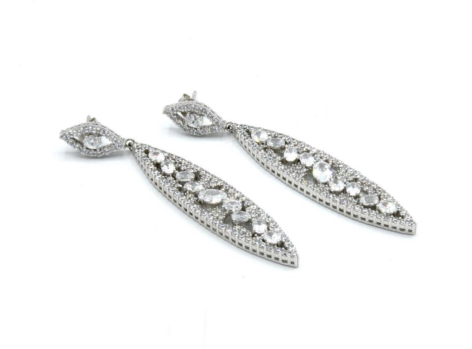 ORECCHINI PENDENTI MODELLATI A FOGLIA in argento 925, con fila di zirconi...