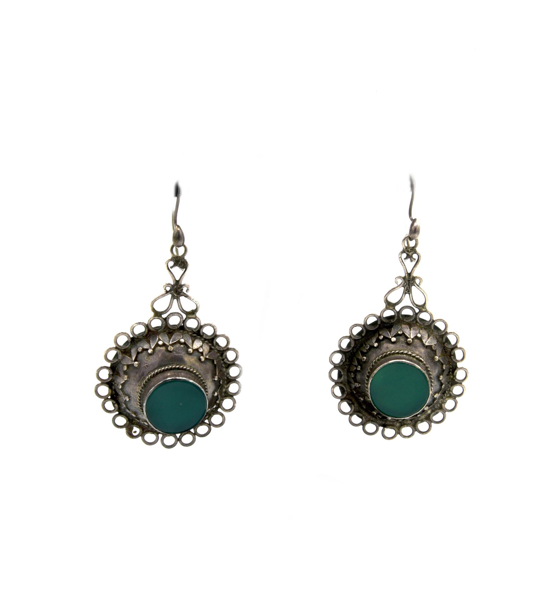 ORECCHINI PENDENTI IN ARGENTO IN SITLE ETNICO CON PIETRA SEMIPREZIOSA VERDE