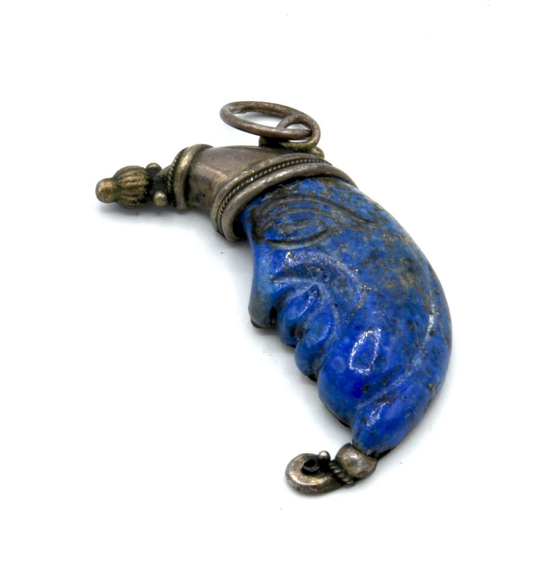 CIONDOLO IN LAPISLAZZULO E ARGENTO MODELLATO A LUNA