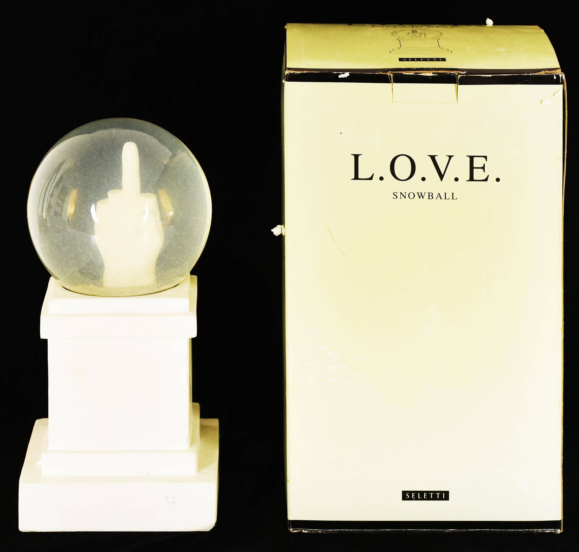 Maurizio Cattelan L.O.V.E. scultura in gesso, entro boule de neige,...