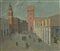 Giuseppe Manfredi LISTONE DI FERRARA olio su cartone, cm 59x67 firma