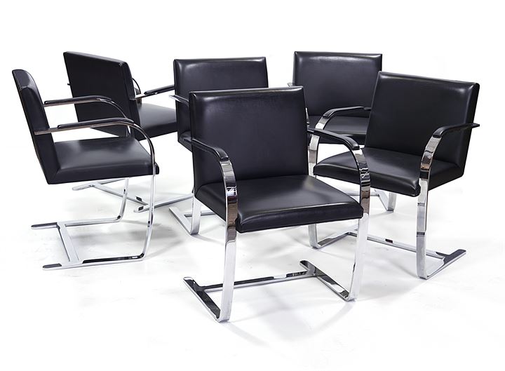 VAN DER ROHE LUDWIG MIES Brno Sei sedie in acciaio cromato con imbottitura in...