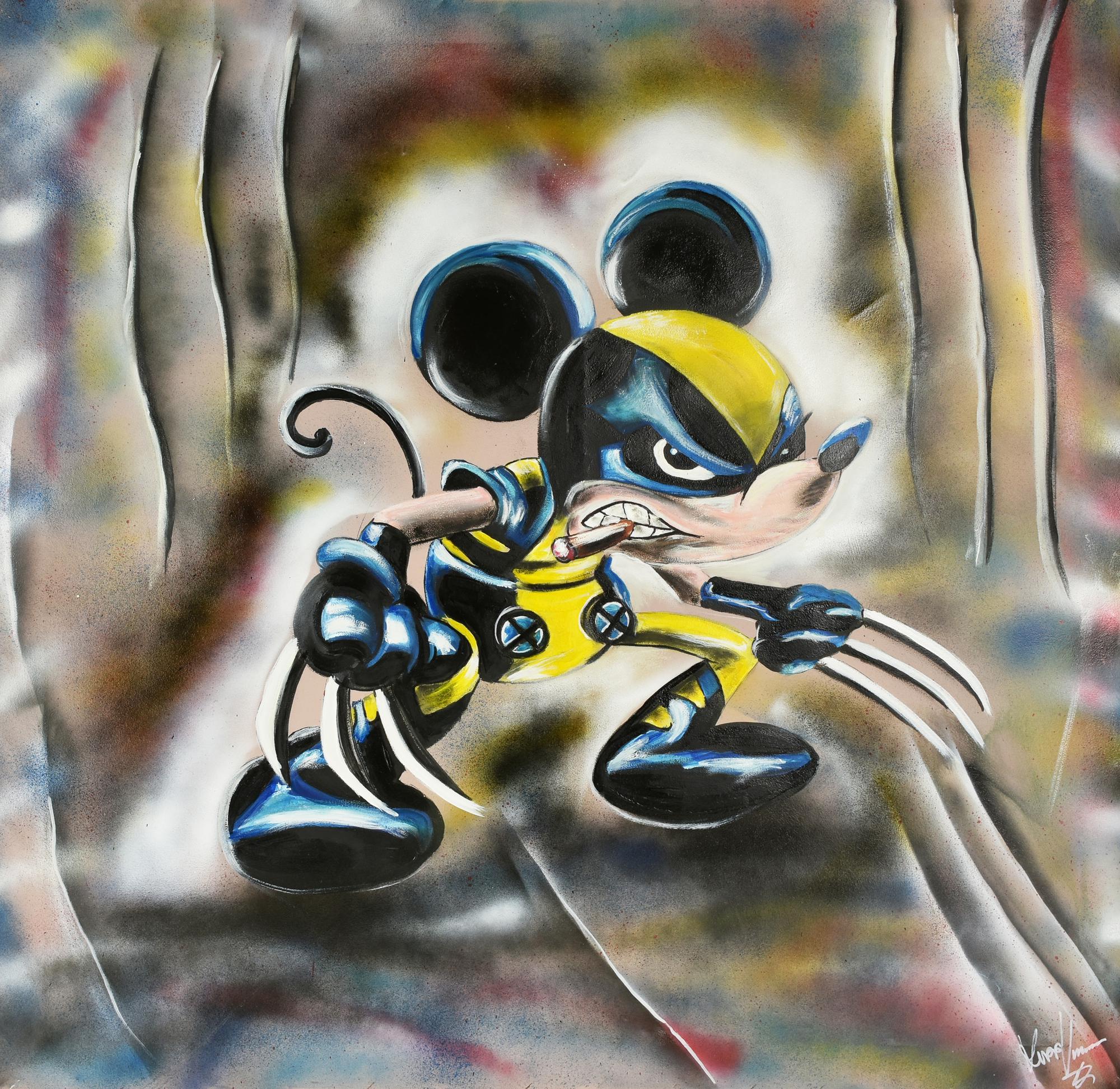 Kurt Vincenzi TOPOLINO LOGAN olio e spray su tela, cm 100x100 firma sul...