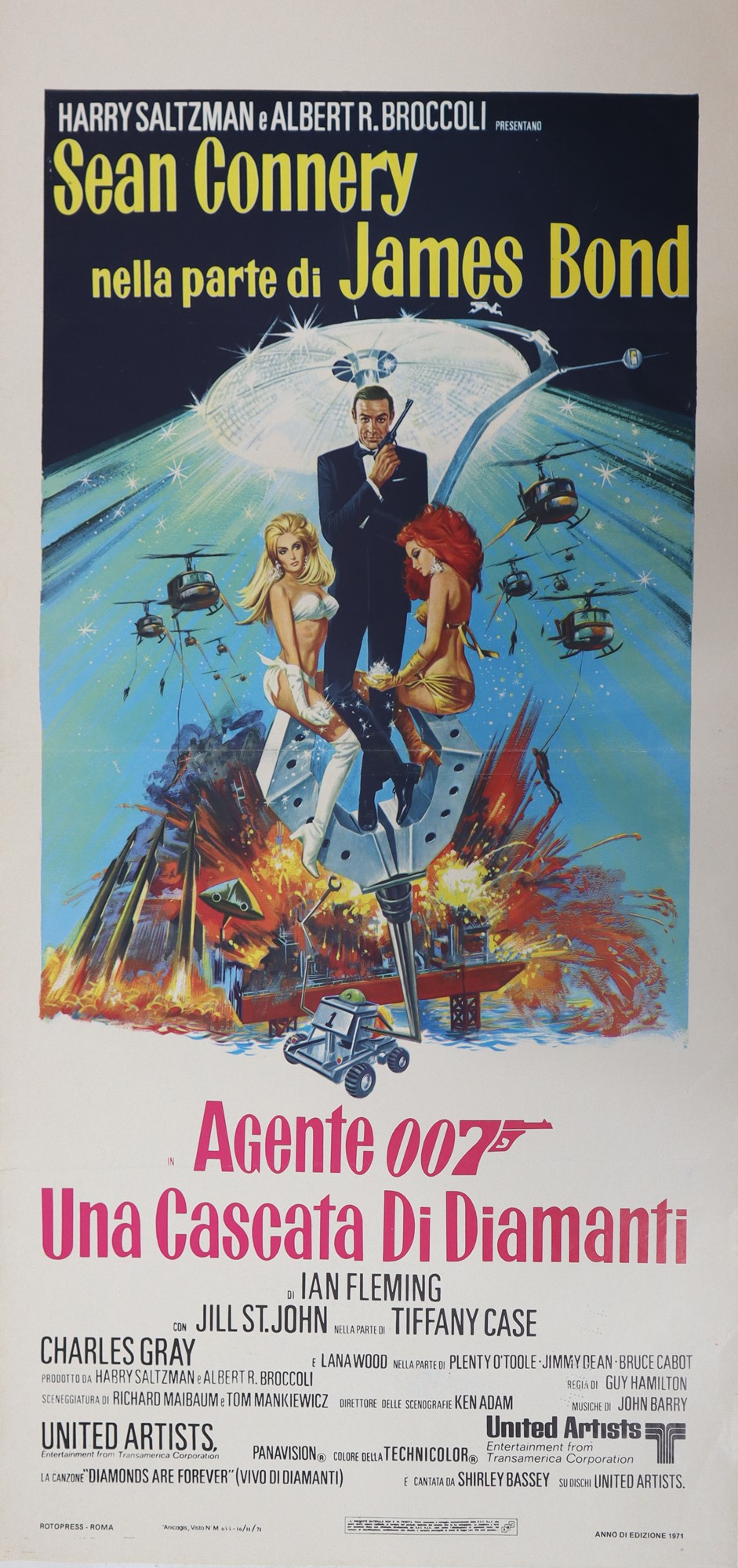 Locandina film ''Agente 007 Una cascata di diamanti'', 1971 cm 70 x cm 33 Rotopress - Roma, datato in basso a destra, normali segni d'uso