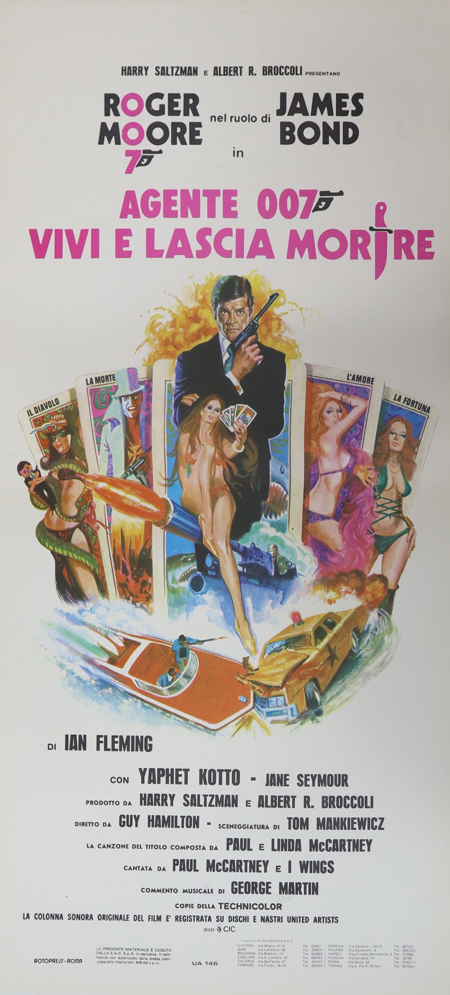 Locandina film ''Agente 007 vivi e lascia morire'' cm 70 x cm 33 Rotopress - Roma, normali segni d'uso