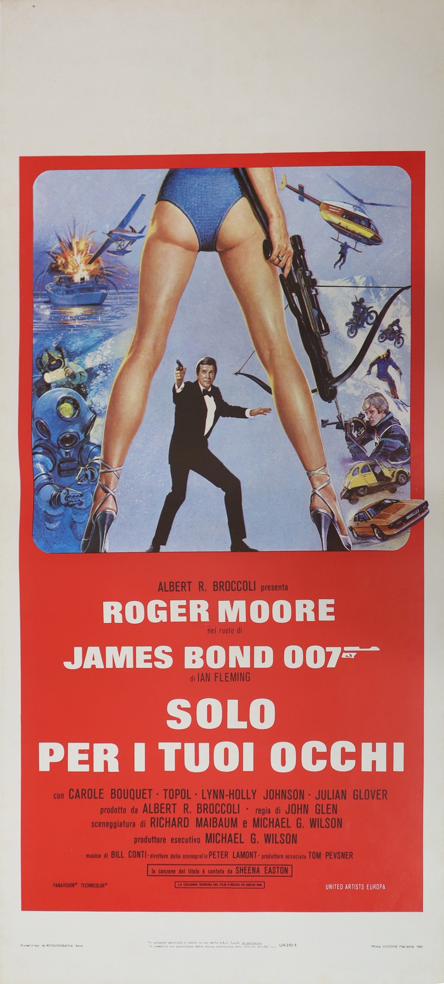 Locandina film ''Solo per i tuoi occhi'', 1981 cm 70 x cm 33 Prima Edizione Italiana, Rotolitografica Roma, datato in basso a destra, normali segni d'uso