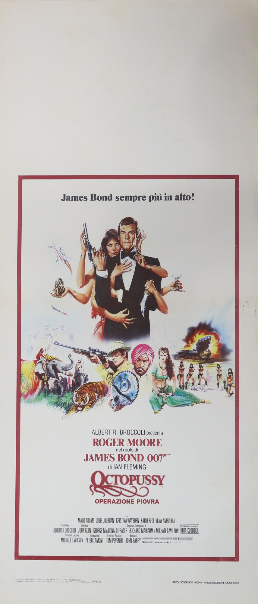 Locandina film ''Octopussy operazione piovra'', 1983 cm 70 x cm 33 Rotolitoservice - Roma, datato in basso a destra, normali segni d'uso