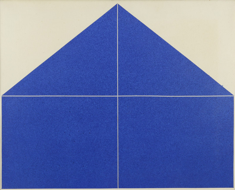 RODOLFO ARICO' (1930-2002) Senza Titolo 1971 collage blu su tela cm 73x93 firmato e datato sul retro timbro Grossetti, Milano provenienza:Stefanoni Zeno, Rovigo Untitled 1971 collage blue on canvas inch 28.76x 36.64 signed, dated and titled on the reverse stamp of Grossetti, Milano prove...