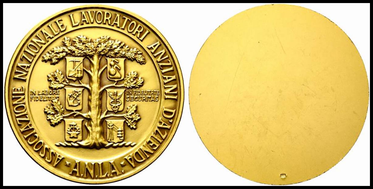 ASSOCIAZIONE NAZIONALE LAVORATORI ANZIANI D'AZIENDA. Medaglia AE dorato (218 g - 79,40 mm)